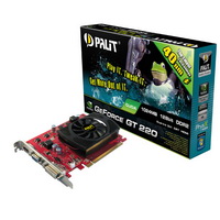 Nvidia Geforce GT220'nin fiyatı çok daha düşük. Bu grafik yongası giriş seviyesi segmentinde yer alıyor ve Geforce 9500 GT'nin seviyesinde bir hesaplama gücü sunuyor. GPU 48 kaplama birimi (1360 MHz shader saat hızı) sunuyor ve 625 MHz hızında çalışıyor; 1 GB büyüklüğündeki DDR2-VRAM ise 400 MHz ile çalışıyor. Kart Microsoft'un DirectX 10.1 arayüzünü ve dolayısıyla Shader Model 4.1'i destekliyor; fakat birçok oyuncunun gözünde çok yavaş olduğu için bu özelliğin pek bir anlamı yok. Palit Geforce GT220 öncelikle bilgisayarlarını TV ile bağlamak isteyen multimedya kullanıcılarına hitap ediyor. Bağlantı arabirimi olarak VGA, DVI ve HDMI sunuluyor. Bu arabirimler sayesinde kartı neredeyse her çıkış cihazına bağlayabilirsiniz.